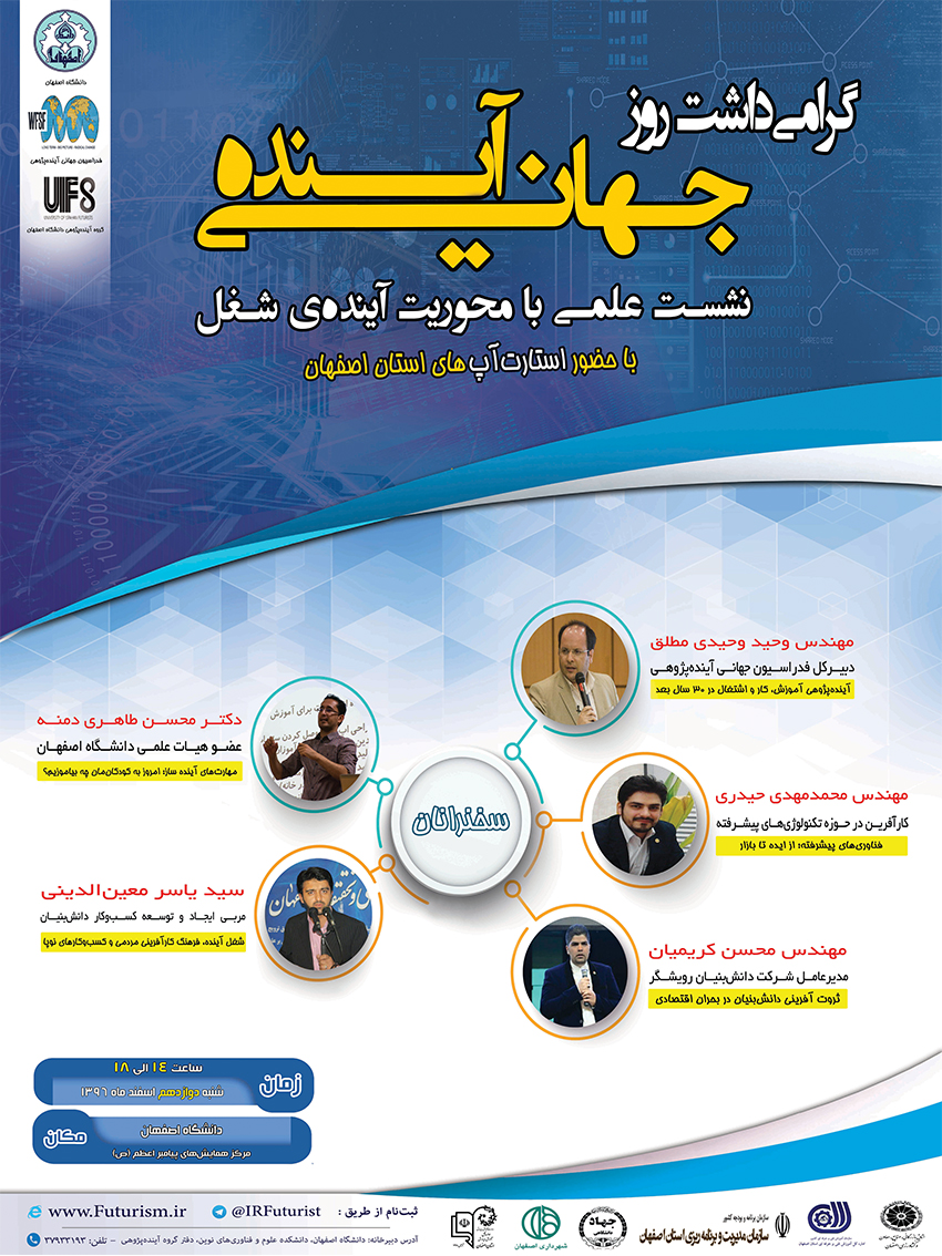 گروه آینده پژوهی دانشگاه اصفهان نیز هم بنابر وظیفه آکادمیک و دانشگاهی‌اش و هم بنابر مسئولیت اجتماعی‌اش و به منظور گرامی‌داشت روز جهانی آینده، نشست علمی برگزار می‌کند با محوریت “آینده شغل”. مسئله‌ای که دغدغه این روزهای همه جوان‌ها و خانواده‌های آن‌هاست.